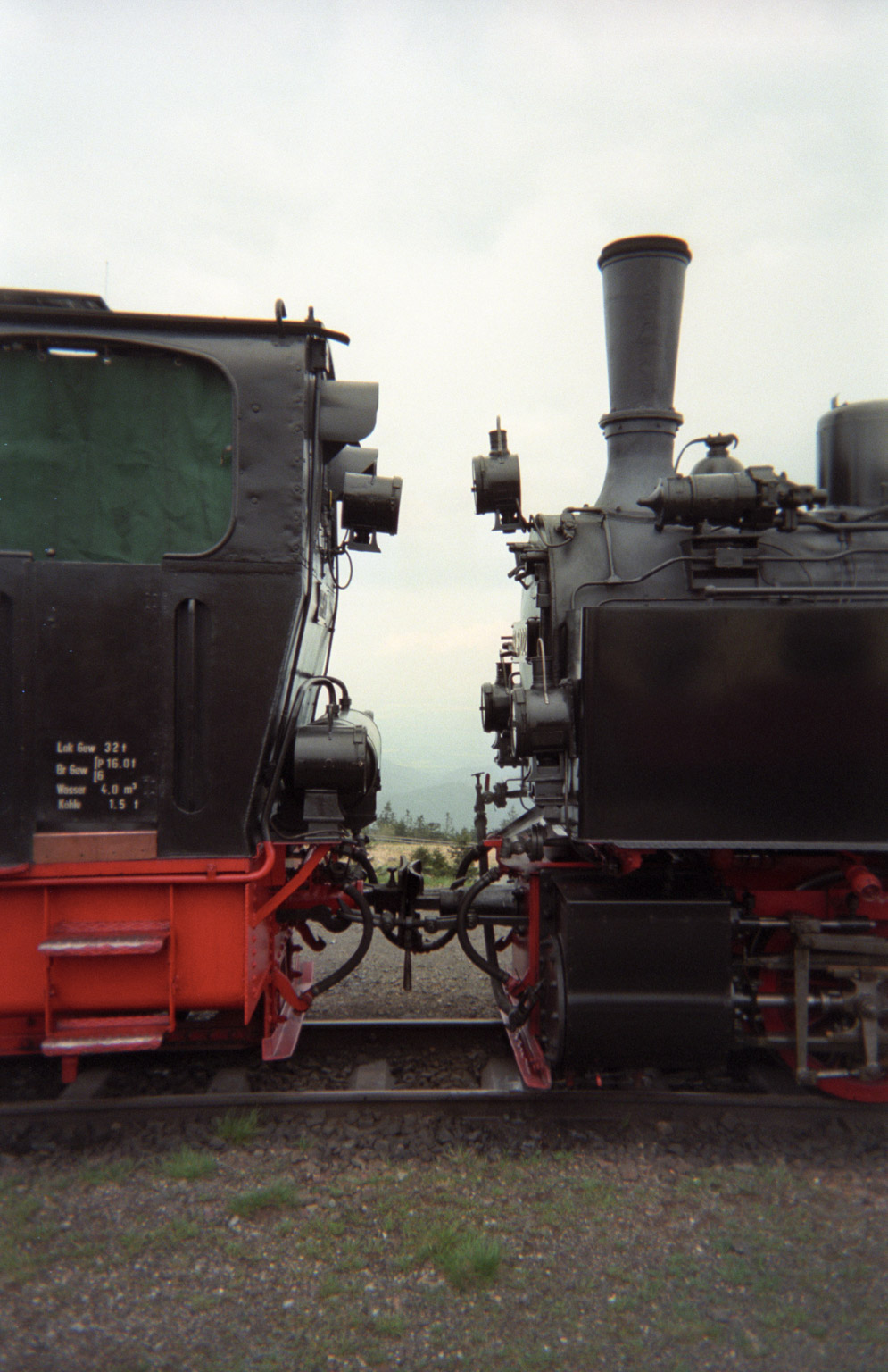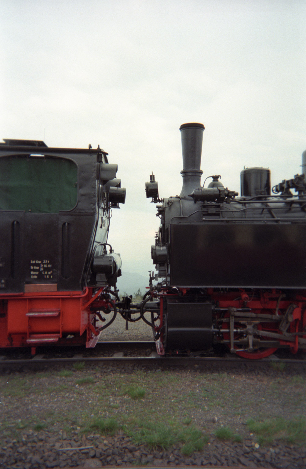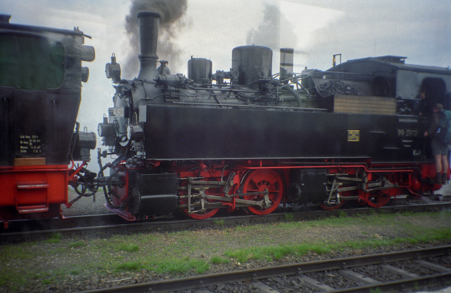 Oben auf dem Brocken ist es kalt und windig, es hat sich mittlerweile bezogen. Die Gaststätte ist voll, wir fahren nach einem Getränk draußen (!) mit der Brockenbahn herunter. Es liegt an Papa, ich mag ja solche Wirtschaften. Von Wernigerode geht es mit Regionalbahn zurück. Jemand kauft uns noch Fahrkarten damit wir den Zug nach Ilsenburg bekommen, erinnert sich Papa.